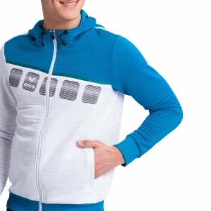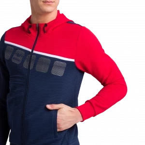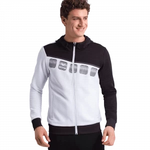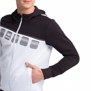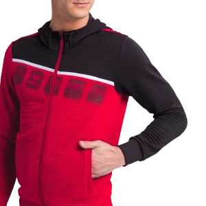 Hood meets zip: The 5-C TRAINING JACKET WITH HOOD is made from soft, stretchy functional material. It offers the necessary freedom of movement when playing sport. The training jacket with ribbed effect still has a soft cotton feel. Ribbed trim at the hem and on the sleeves add to the comfortable fit. Zip pockets at the side can be used to store small items.