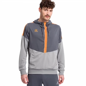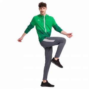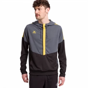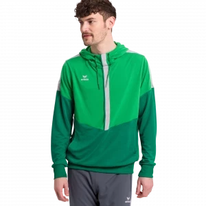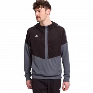 You have full function and comfort in the SQUAD HOODY. The functional material has a soft, pleasant-to-wear sensation – like cotton. The hood with drawstring and the large front pouch pocket create the hoody look. Ribbed bands round off the functional features.