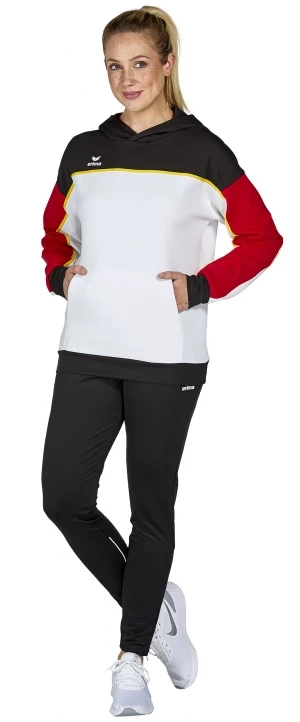 The hooded sweatshirt impresses with its feel-good factor! It is made from a skin-friendly cotton blend that feels pleasantly soft against the skin and is comfortable to wear. The hoodie comes in a fitted cut so that you can benefit from an excellent fit and a beautiful silhouette. The integrated kangaroo pocket is a real highlight. The hooded sweatshirt is rounded off by the lined hood, ribbed cuffs and hem and the ERIMA slogan on the back.