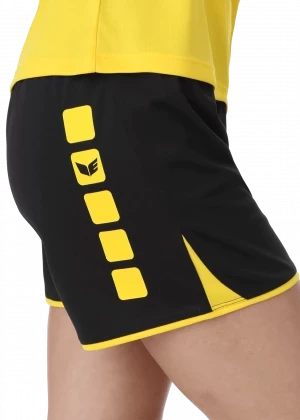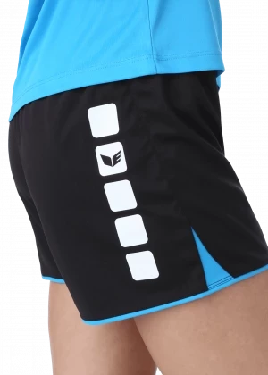The CLASSIC 5-C SHORTS for ladies are made from quick-drying, stretchy material for wearing comfort and freedom of movement on the field. The adjustable stretchy waistband guarantees a perfect fit and a heat-resistant 5-C print adorns the back. Perfect with all jerseys with the typical ERIMA five cubes.