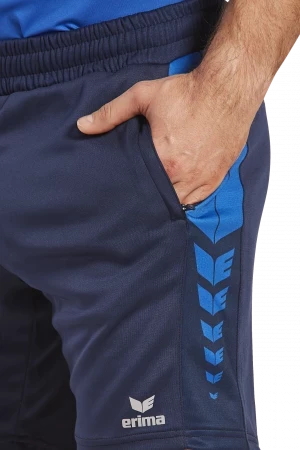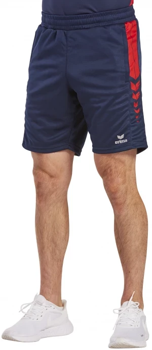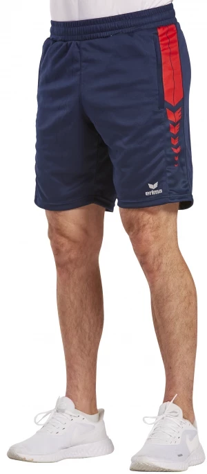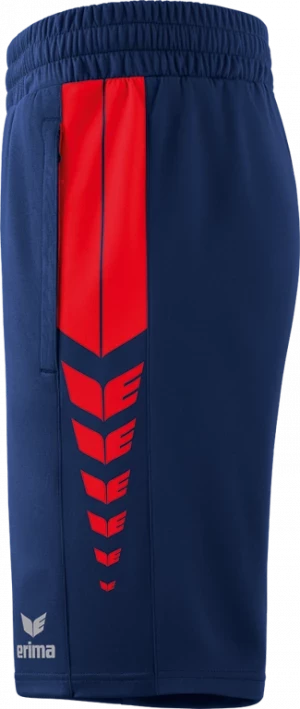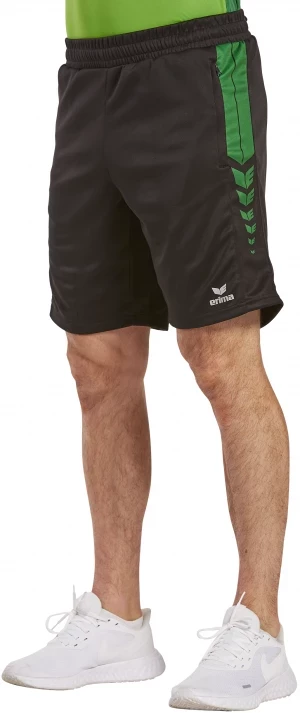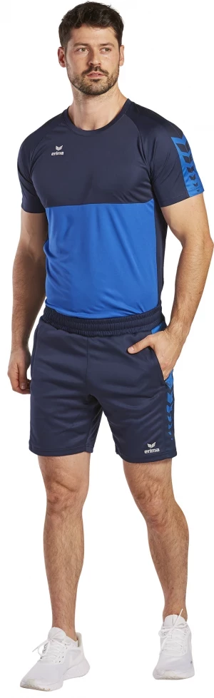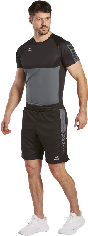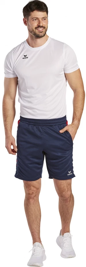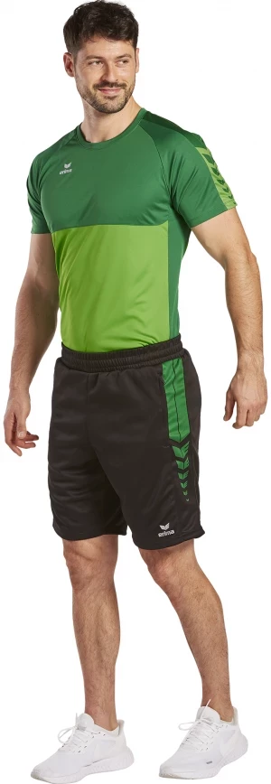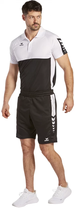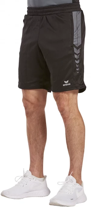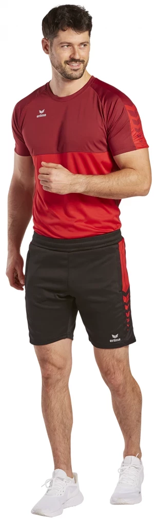 Whether for sports or everyday wear, with our Six Wings Worker shorts you benefit from a comfortable fit thanks to the functional polyester material. Thanks to the elastic waistband with drawstring, the shorts fit perfectly and won't slip. You can safely store important items such as your smartphone and other items in the zipped side pockets. The ERIMA swing design on the side is a visual highlight. The shorts are available in 9 different colors and can be perfectly combined with all tops from the Six Wings Teamline as well as many other ERIMA items.