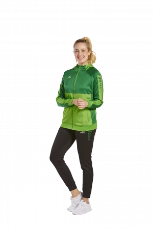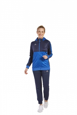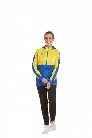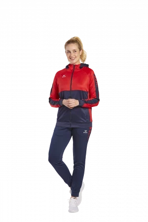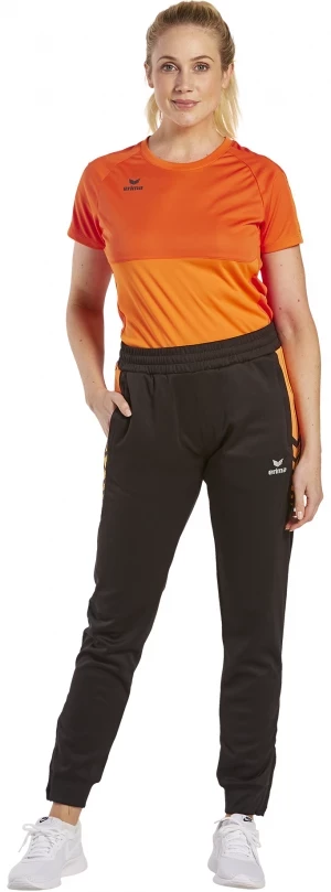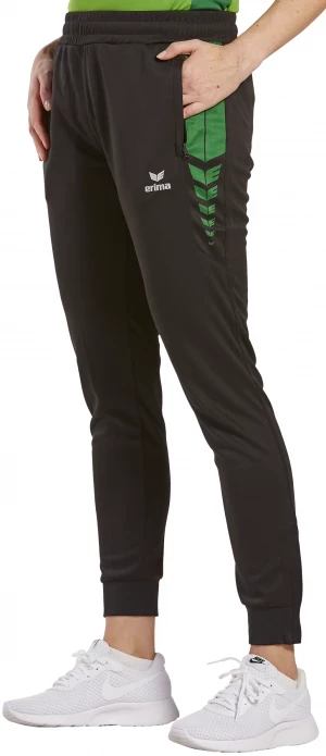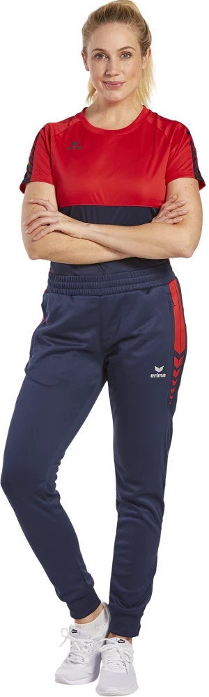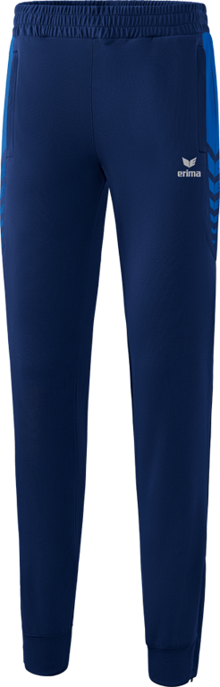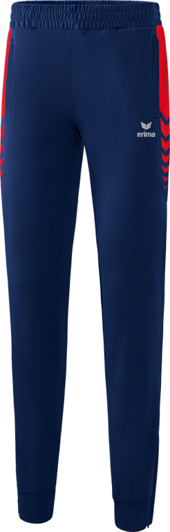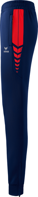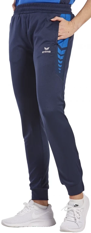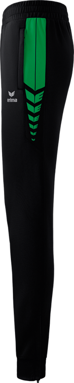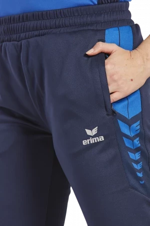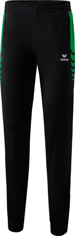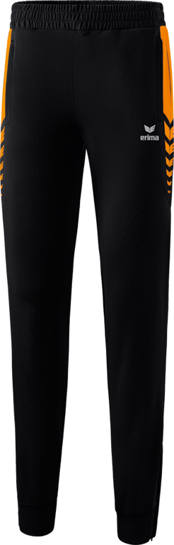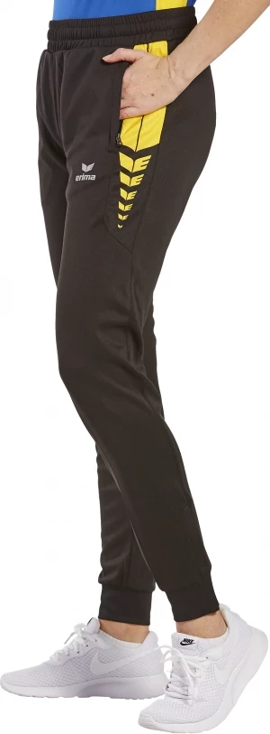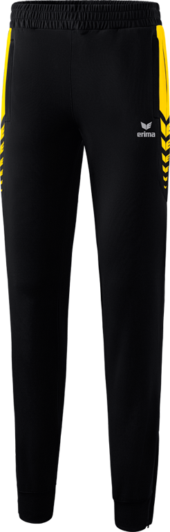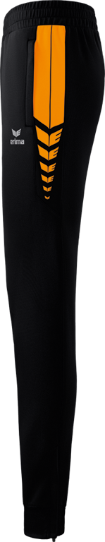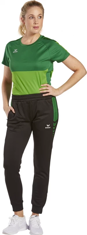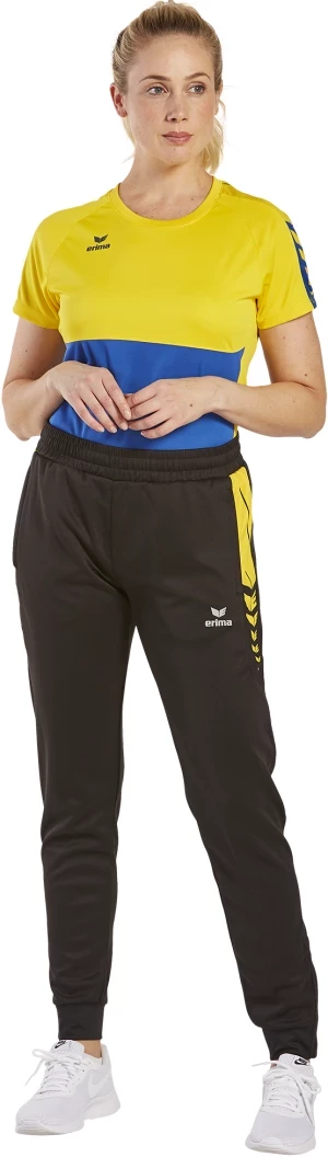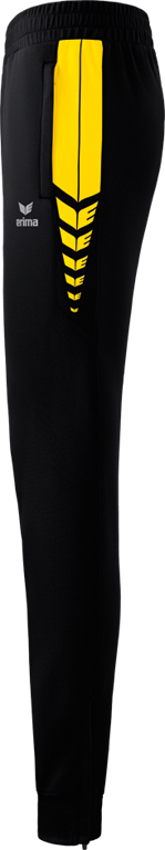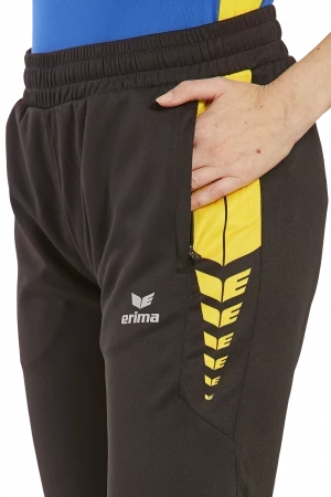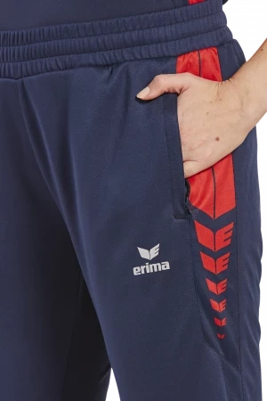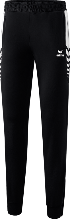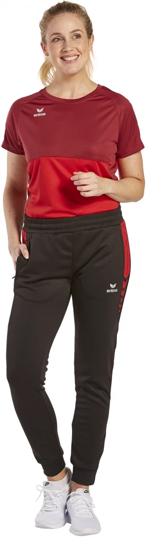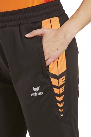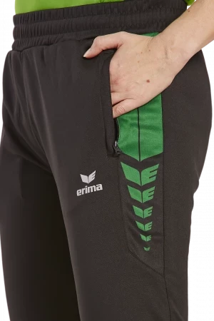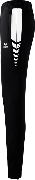 The Six Wings Worker trousers are the ideal companion for your next workout. They are made from a hard-wearing polyester material that is particularly robust. Thanks to a wide waistband with a drawstring, the training trousers fit perfectly and sit securely without slipping. Practical extras such as the zipped side pockets, wide ribbed cuffs and zippers at the leg ends make these trousers a real must-have. The design of the Six Wings Worker trousers is also impressive: with the stylish ERIMA swing design on the side and the slim fit, you'll be right on trend.
