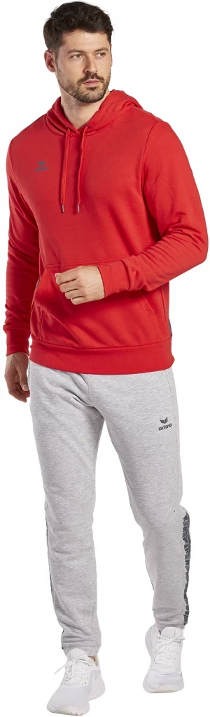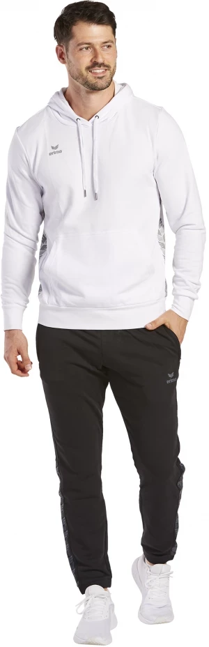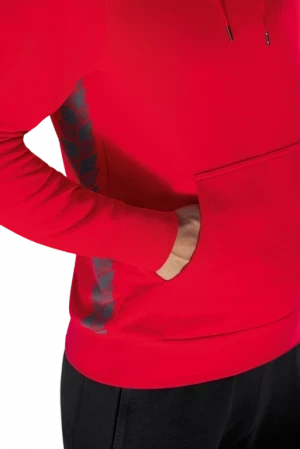 The Essential Team hoody is made of a pleasantly soft cotton material that feels super comfortable on the skin and offers maximum wearing comfort. At the same time, a certain proportion of polyester ensures natural freedom of movement. The attached kangaroo pocket, in which you can store smaller items, is super practical. The drawstring hood keeps you warm in cooler temperatures. The hooded sweatshirt has wide ribbed cuffs on the sleeves and hem, which ensure an optimal fit. The sweatshirt comes in the simple design of our Essential Teamline, with a stylish ERIMA wing print on the side.