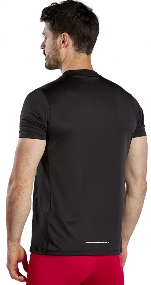 The T-shirt is made from a very lightweight, quick-drying functional material so that you can benefit from a pleasantly dry feel during your training sessions, even in high temperatures. The mesh inserts at the sides ensure an optimal body climate. The T-shirt is also equipped with flat seams to prevent chafing even when you are moving a lot. A high level of comfort is guaranteed! Super practical: the reflective element on the back ensures better visibility at dusk.