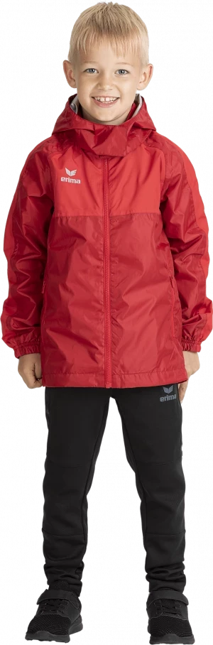 On a rainy match day, you and your team can rely on the Team all-weather jacket. It is made from a waterproof outer material and comes with taped main seams to keep you dry even in the rain. The high stand-up collar with integrated hood offers you additional protection from the wind and weather. The all-weather jacket is equipped with practical extras such as cuffs on the sleeves and hem as well as zipped side pockets. The jacket is rounded off by the open inner lining, which makes it easy to finish.