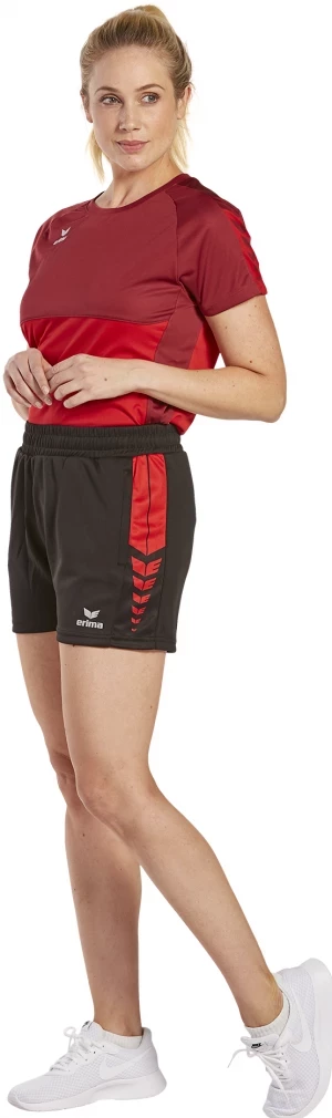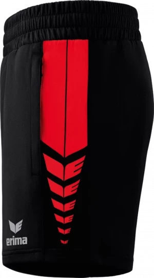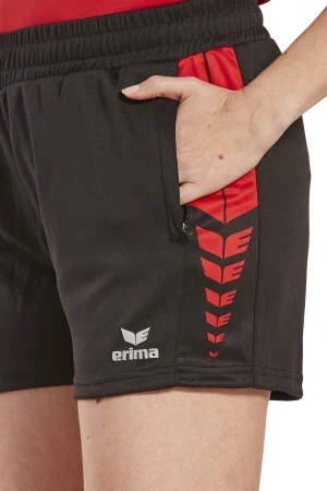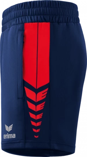 Whether for sports or everyday wear, with our Six Wings Worker shorts you benefit from a comfortable fit thanks to the functional polyester material. Thanks to the elastic waistband with drawstring, the shorts fit perfectly and won't slip. You can safely store important items such as your smartphone and other items in the zipped side pockets. The ERIMA swing design on the side is a visual highlight. The shorts are available in 9 different colors and can be perfectly combined with all tops from the Six Wings Teamline as well as many other ERIMA items.