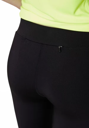 The PERFORMANCE CROPPED RUNNING PANTS for ladies follow your running movement thanks to their stretchy functional material. And wick moisture away from your skin for a pleasant and dry wearing sensation. With their wide waistband and flat stitching they sit comfortably up to the finish line. At the same time, you have important items ready to hand during your run with the waterproof bag.