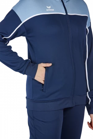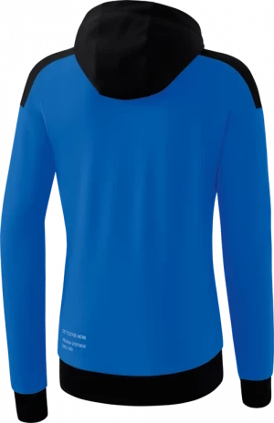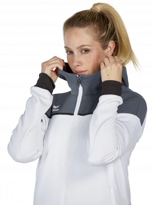At lower temperatures, the CHANGE by erima training jacket is a must-have on the way to training or when warming up. It is equipped with a high collar and hood to keep you warm. The functional material is particularly hard-wearing and can therefore withstand any training session. Practical extras include ribbed cuffs and hem for an excellent fit and zipped side pockets for your valuables. The training jacket has a tailored cut that ensures a great fit. The ERIMA slogan on the back is a subtle detail.