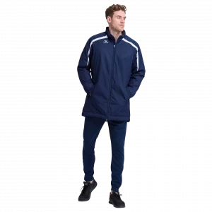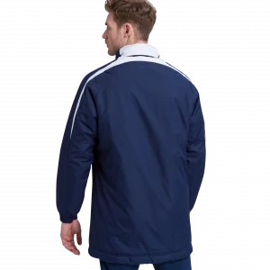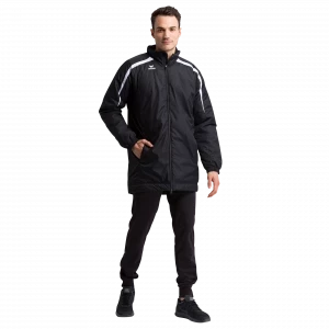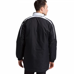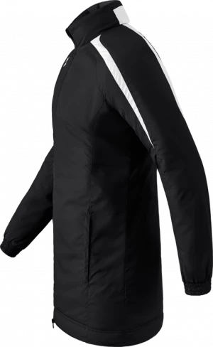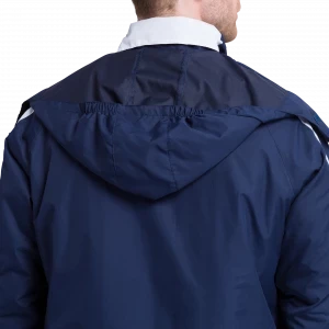 Whether you are on the side line or waiting to come on: With the LIGA 2.0 STADIUM JACKET you are warm and comfortable. It has a windproof and waterproof coating and warm lining. There is also a functional hood that provides additional protection against the weather. With the stretchy band and a longer style the jacket sits comfortably when standing and sitting. At the same time, closable pockets offer the necessary space for important items.